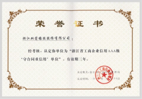 日前,我公司再次被浙江省工商行政管理局續(xù)展認(rèn)定為“浙江省工商企業(yè)AAA級‘守合同重信用’單位”。