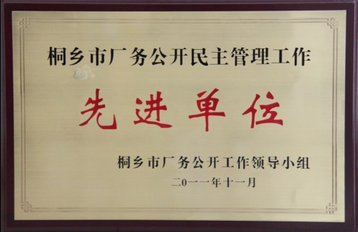 公司榮獲“桐鄉市廠務公開民主管理工作先進單位”稱號