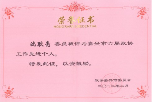 董事長沈耿亮被評為“嘉興市六屆政協工作先進個人”