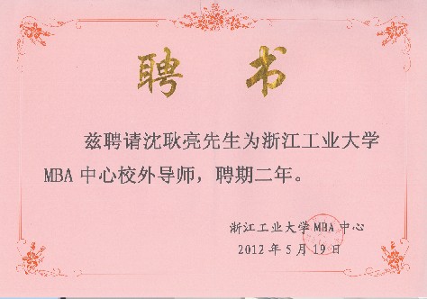 交流活動一開始,夏建勝教授就代表浙江工業大學MBA中心授予公司董事長沈耿亮“浙江工業大學MBA中心校外導師”的榮譽稱號并頒發證書。在熱烈的掌聲中,公司董事長沈耿亮首先向在場蒞臨我公司參觀交流的全體師生表示熱烈的歡迎,接著又熱情介紹了公司的基本情況、發展歷程、產品信息,經營狀況以及未來的發展計劃等。公司總經理助理兼人力資源與企管部經理郎洪峰作為前MBA學員發表個人感言并分別從企業家、產品、質量、人才等角度和學員交流了何為創業、如何創業等個人感想。交流活動結束前,公司董事長沈耿亮還與學員們就公司體制與公司發展、外貿的銷售渠道、申請“中國馳名商標”等相關學員感興趣的話題展開了討論交流。整場交流活動在歡快的掌聲中結束。