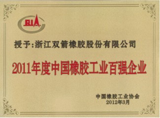 第七屆中國管帶行業大型企業峰會于2012年5月21日至5月24日在安徽淮北口子國際大酒店隆重舉行。公司董事長沈耿亮出席會議,同時公司榮獲“2011年度中國橡膠工業百強企業”的榮譽稱號。