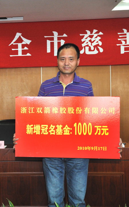 9月17日上午召開的全市慈善募捐動員大會上,市委書記費建文在會上指出,慈善事業的發展,慈善資金的募集,需要社會各界人士的廣泛參與。慈善募捐工作事關我市貧困群眾的切身利益,事關和諧桐鄉建設。雙箭股份積極響應舉牌認捐,在120萬冠名基金的基礎上,公司代表與市慈善總會簽訂了1000萬元的冠名基金協議,扶持弱勢群體,支持慈善事業發展。